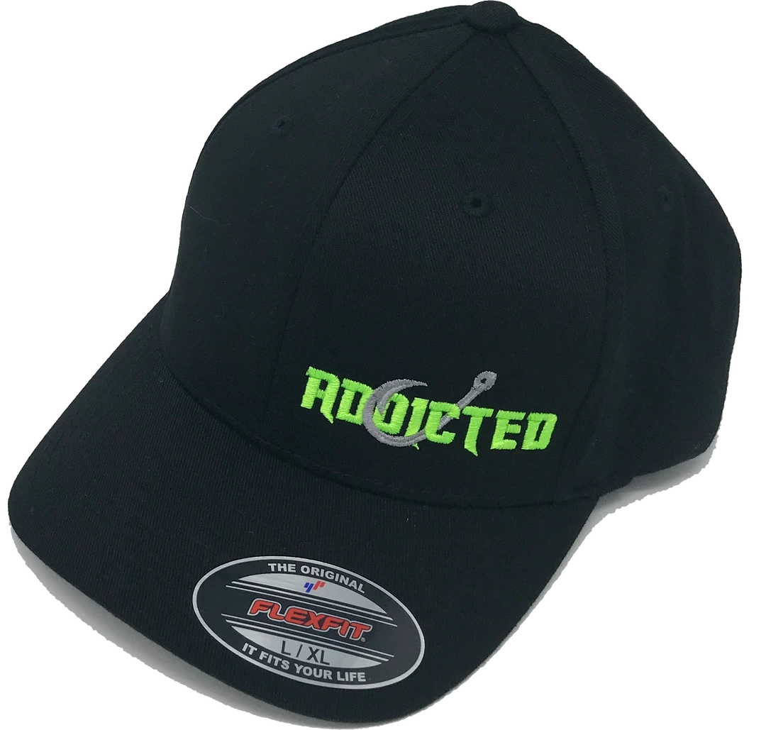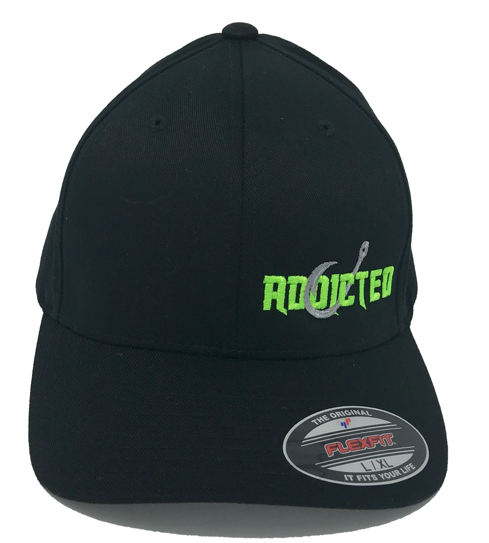 A great flexfit hat having a solid black body paired with a green Addicted logo. One of our most popular sellers, this hat is sure to be your next “LUCKY” hat!