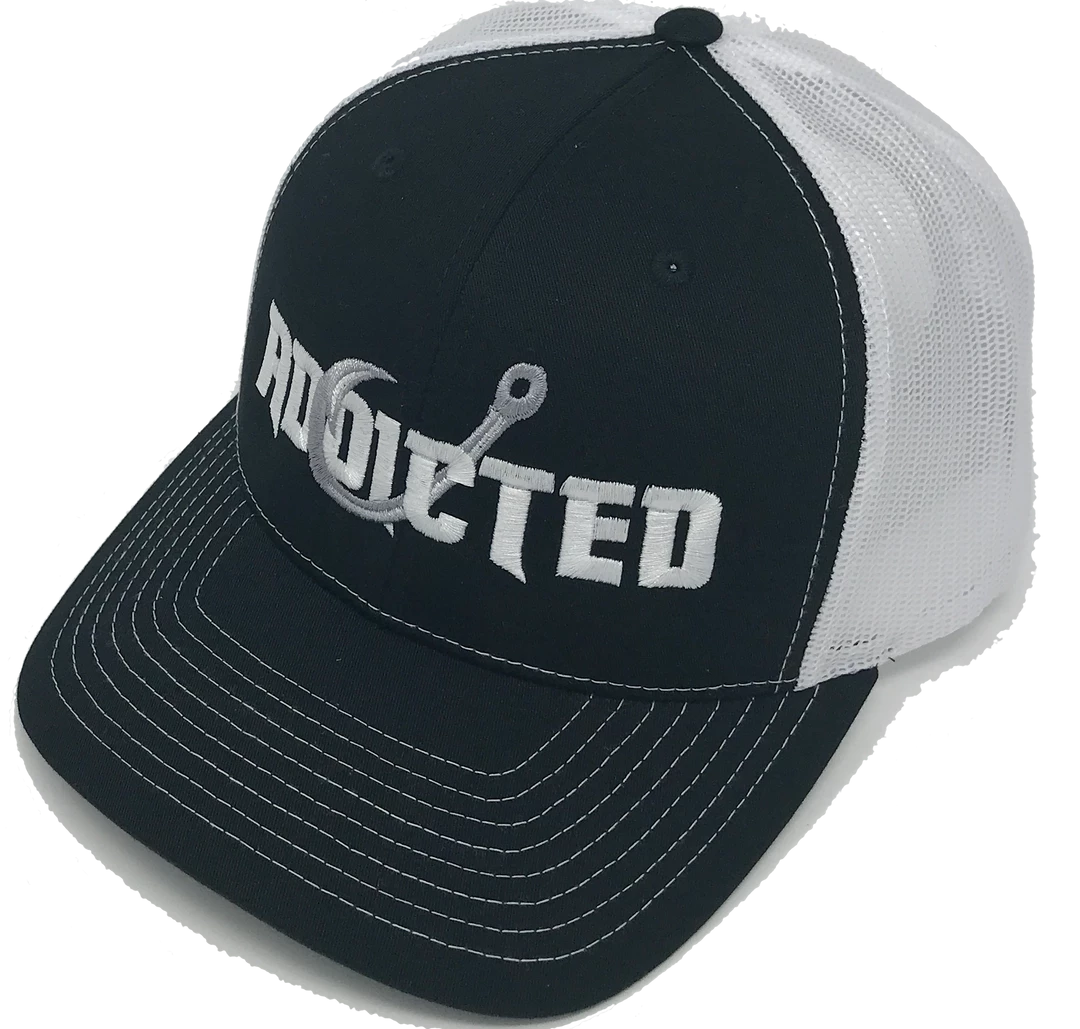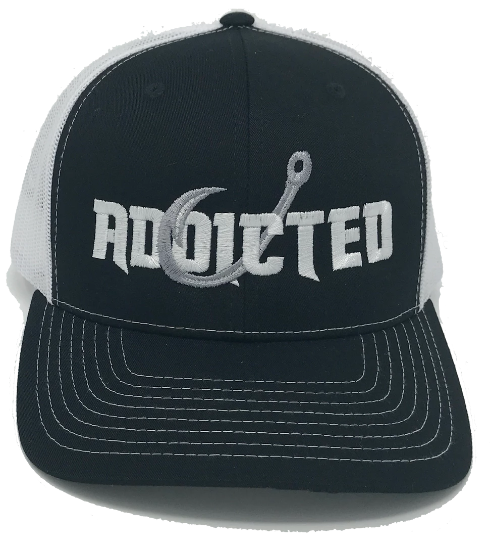 Our Rep The Addiction Trucker Hat is suited for any type of occasion, both on and off the water. Rep your addiction to fishing loud and proud! This hat features a black crown with black mesh back. Including a snap back enclosure. The large Addicted Logo is embroidered on the front in black and silver.