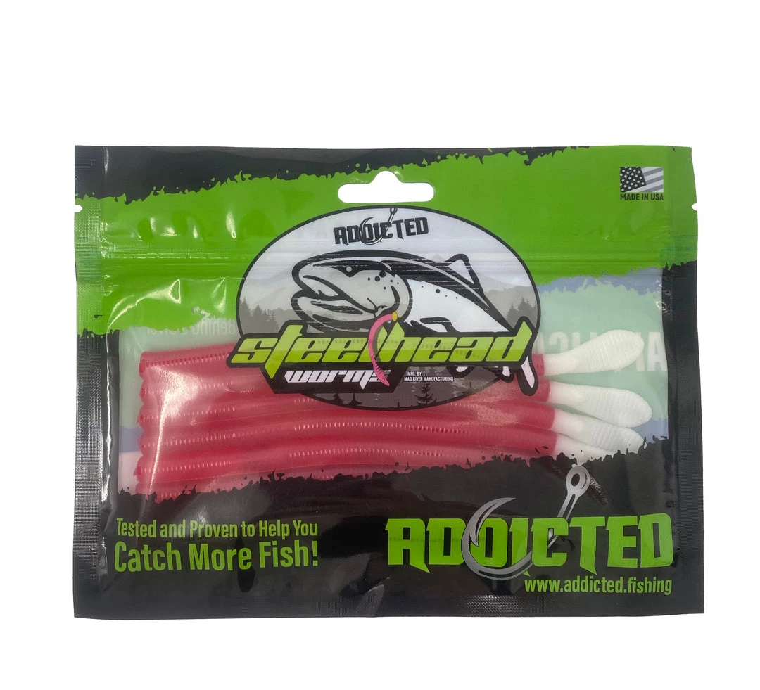 Introducing the Addicted Steelhead Worms! Created for Winter & Summer Steelhead, It’s no secret that plastic worms are extremely effective! In collaboration with Mad River Mfg, we’ve created our own custom line of worms in multiple deadly custom colors. These worms are designed to mimic a lamprey, fish, worms, grubs, or any other natural bug floating down a river or falling from a tree. Addicted Steelhead Worms are proven by the pros to work year round for steelhead. These can be fished in a variety of ways, including but not limited to: