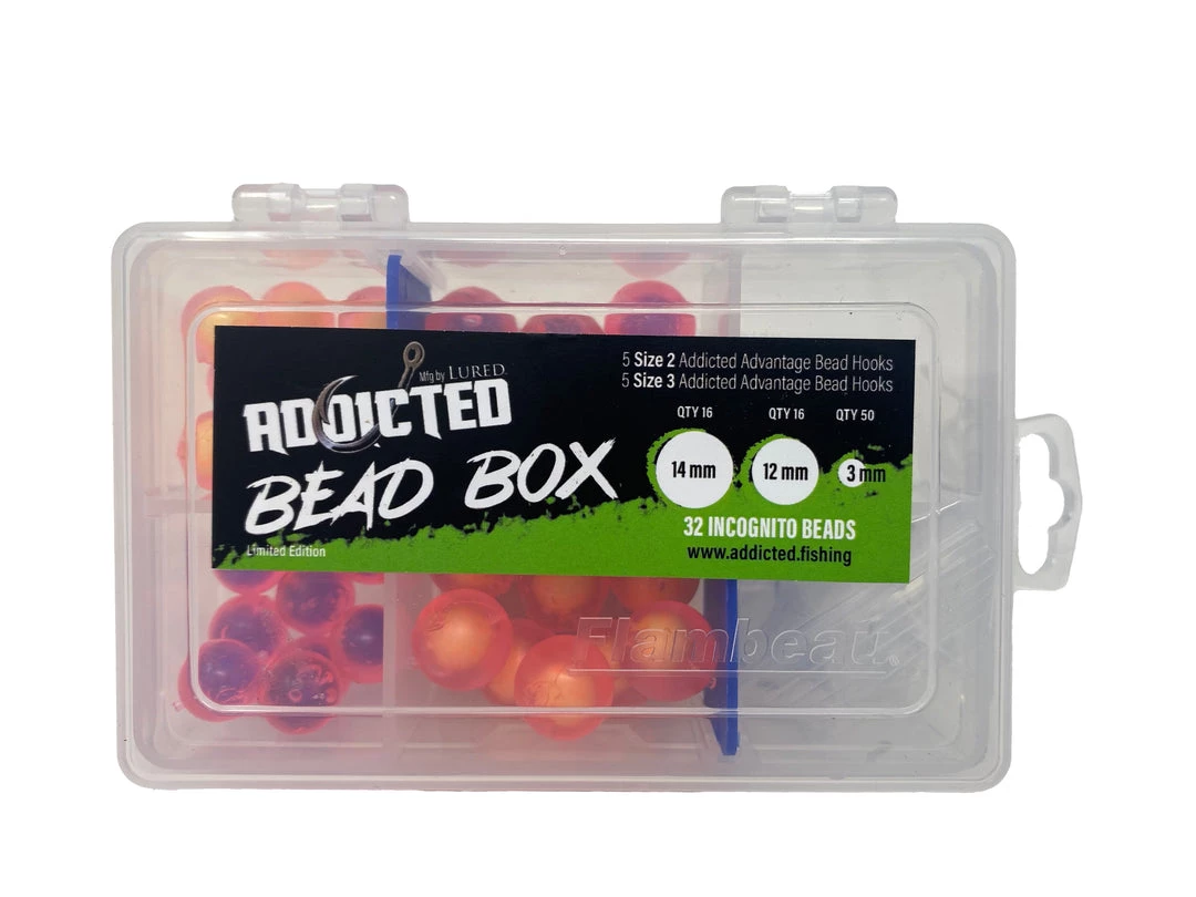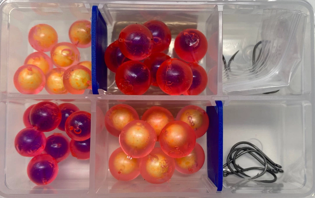 Another collab with Lured By the Bead! Randy Bales makes some absolute killer beads we’ve been fishing and using for years now. Incognito hybrid beads are a custom, hand-built product by Randy at Lured Beads. Incognito beads are a hard bead with a soft bead cover. This unique design puts them on top of the list as being one of the best beads on the market. Below are the colors and sizes included in the box.
