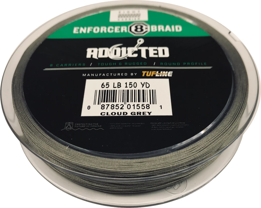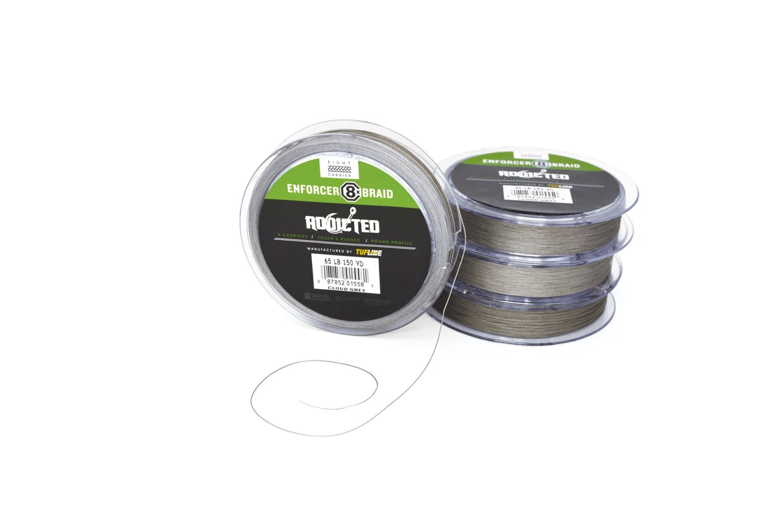 Addicted Enforcer 8x is the most advanced braided line in the TUF Line offering. The Close Angle Braid technology makes it one of the most compact braided lines on the market. The ultra round profile delivers smooth handling, long casts, and almost no rod guide noise. Made with micro-PE fibers, it has the highest strength to weight ratio in its class. Colored with a proprietary, colorfast, bi-component coating process, you’re ensured amazing abrasion resistance and long color life.