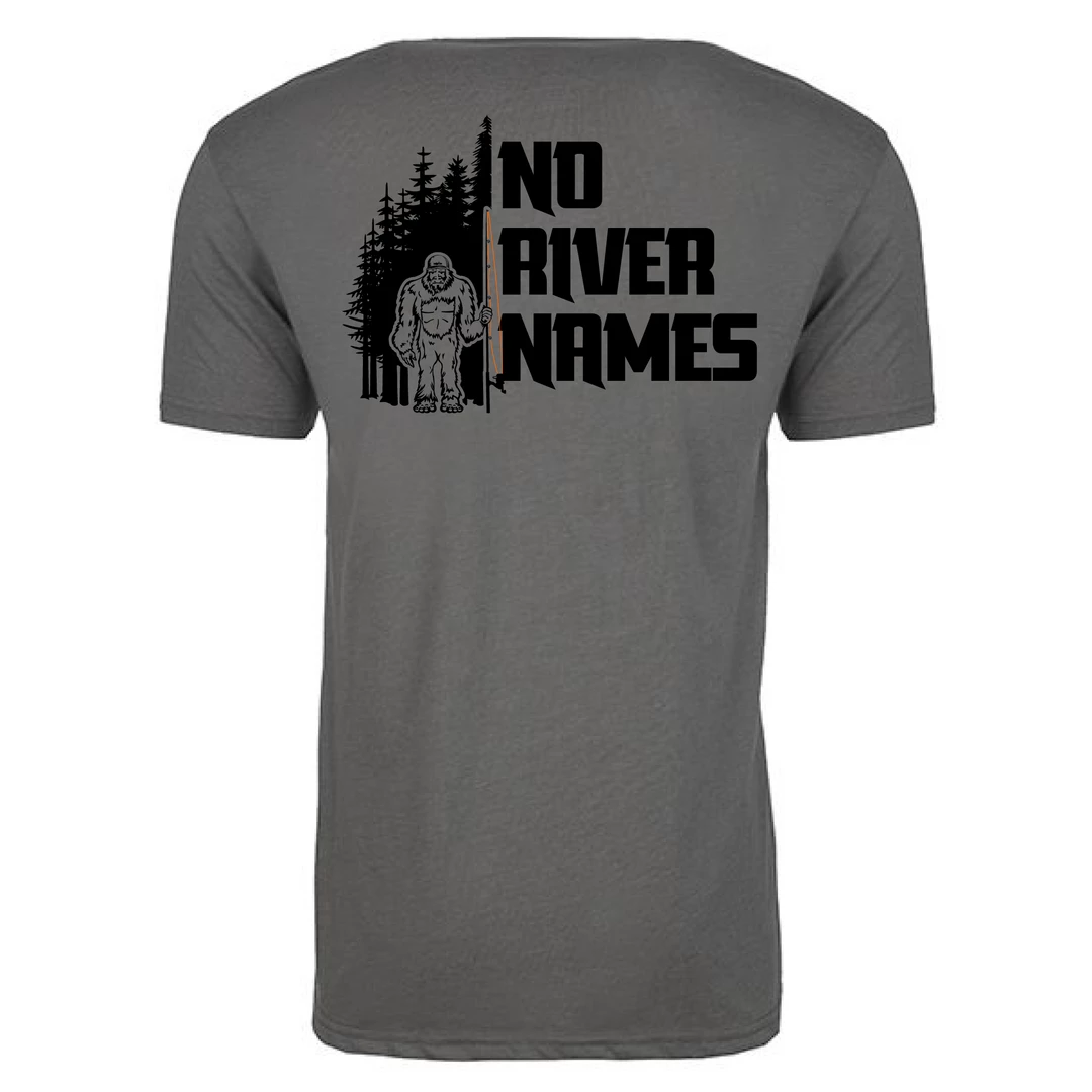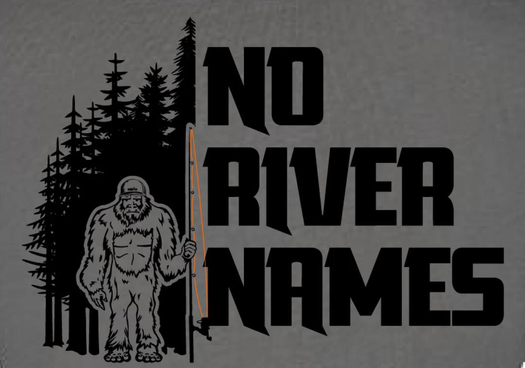 Sasquatch doesn’t like it when people tell the names of the rivers he lives on and fishes! No River Names is a phrase we came up with to express the fact that part of going out and learning fishing is exploring new rivers, don’t be that guy/gal that blasts location names all over the internet. Rep the New No River Names Shirt!!