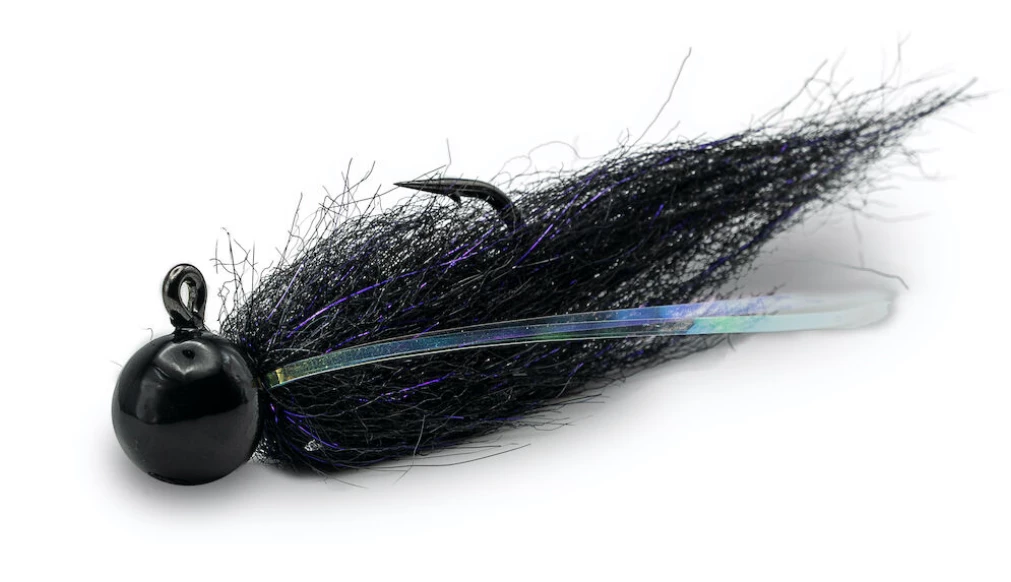 Utilizing Ultrapoint hooks, UV fibers, and jig heads, Mustad partnered with the Addicted Fishing team to create the one-of-a-kind Salmon Twitching Jig. High-end fly fishing brushes tied specifically to target Pacific Northwest species like salmon, steelhead and trout. Think bass fishing techniques and action, but for salmon during their swim upriver. Molded onto a 32824NP-BN jig hook. The 60º bend gives the jig a better pull on retrieval for a more natural swimming action than a 90º hook.