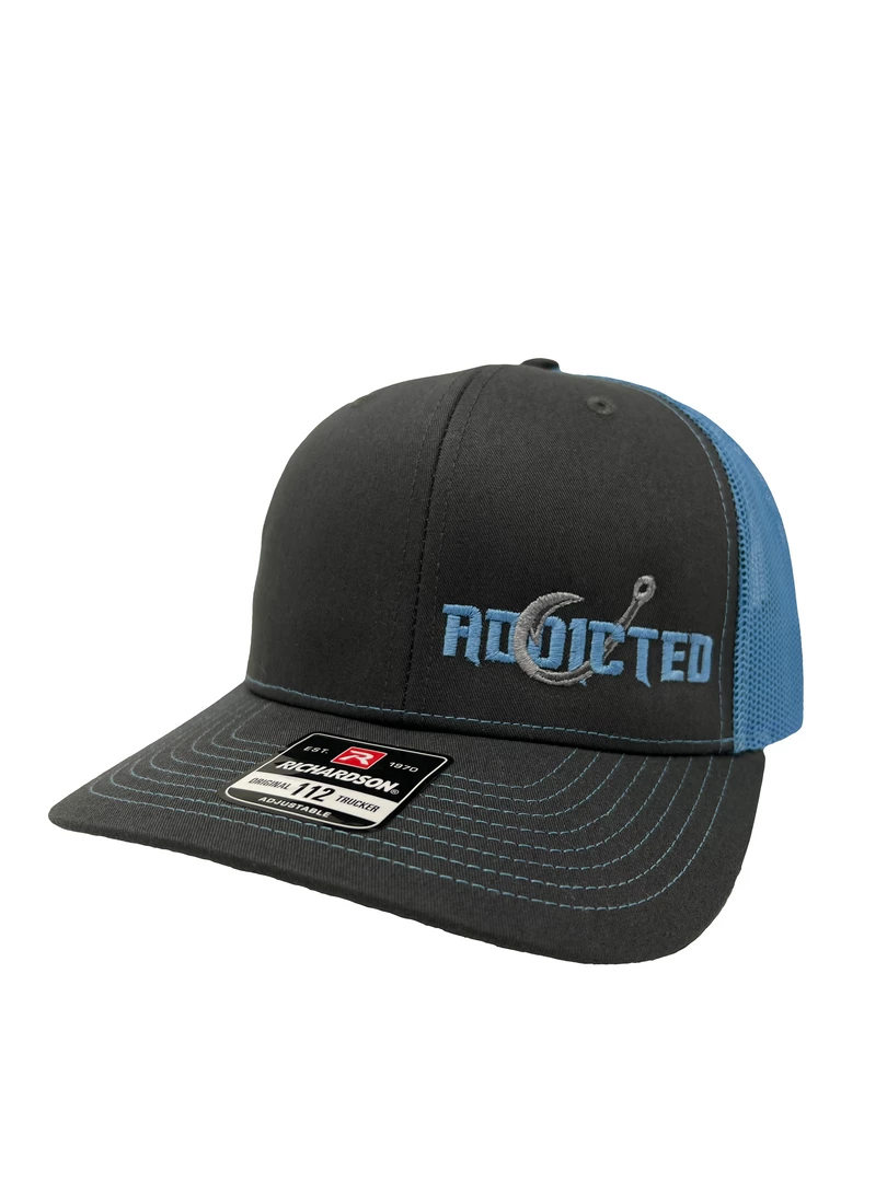 We made this one for the ladies. This hat is embroidered on Richardson 112 hat. We chose a unique teal back with a gray front. It features a clean white Addicted Logo with silver hook on the front. Lets make this your new lucky fishing hat!